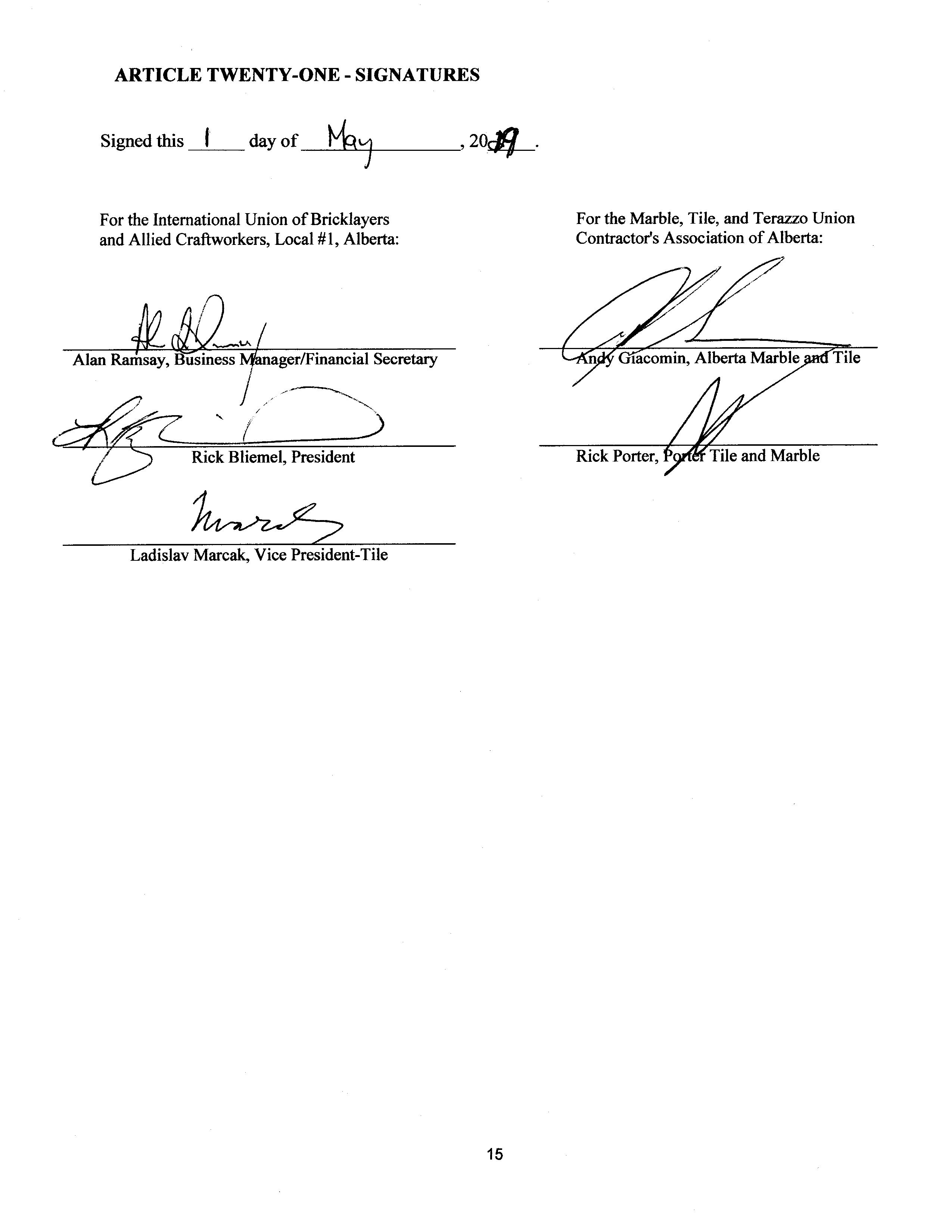 ARTICLE TWENTY‑ONE ‑ SIGNATURES. 15